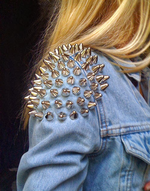 Para empezar con este apartado con fuerza nos traemos este detalle tan "rock", hombreras con tachuelas, una manera fácil de convertir un jersey básico, una blazer o una cazadora en una prenda totalmente distinta. Puedes darle un toque más agresivo con tachuelas XXL acabadas en pincho, o un toque más naif añadiendo sólo unas pocas.